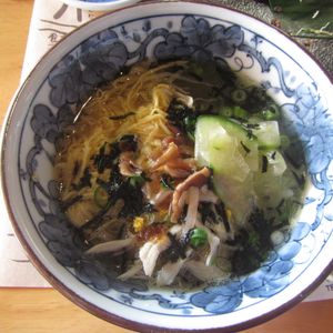 鶏飯は思った以上に具がたっぷり、ご飯とお出汁はおかわり自由。