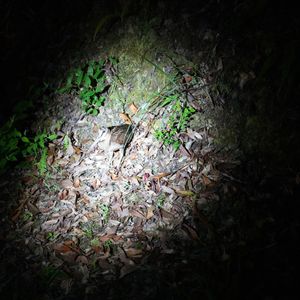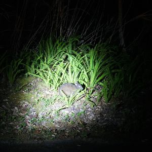 ガイドの川島さんが車をゆっくり走らせながら生き物を見つけて教えてくださいます。ツアー中、本命のアマミノクロウサギは5〜6羽に出会うことができ、草や落葉を食べる様子や山の斜面を登り森に入って行く姿、他にもリュウキュウコノハズク、ケナガネズミ、リュウキュウイノシシ、2種類のカエルも見ることができました。