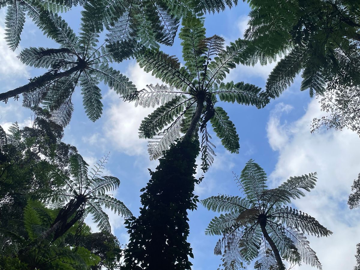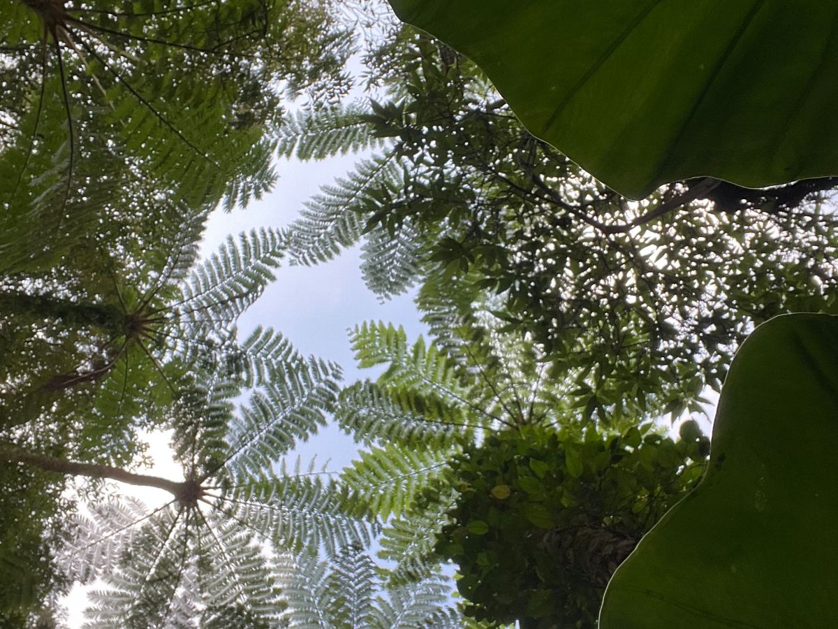 前日の夜からの雨で、ツアーが催行可能か心配したが、問題ないとのことで集合場所から出発!ところが原生林の入り口までの車道が崩れていて通れないとのこと。えーツアーは中止!?かと思ったら、「少し道は悪いけど違うルートで行きます、、」とのこと。何とか入り口までたどり着き、傘をさしながらトレッキング開始。思っていたより足元のぬかるみが酷くなく、説明を聞きながら散策を楽しめた。折り返し地点までは降っていた雨が帰路は上がって、鳥の声も聞こえ(姿はなかなか見ることはできなかったが)十分楽しめた(^^♪