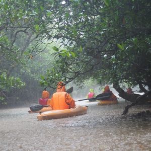 午前は、雨降りの中マングローブ原生林のカヌー体験。