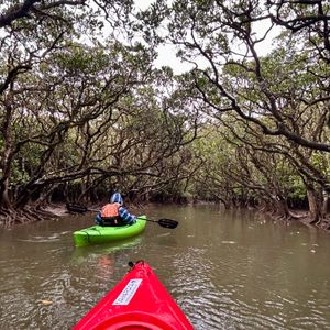 初カヌー本当に楽しかったです!ツアーが少人数だったので、初めてでなにかあってもガイドさんがすぐヘルプしてくれます。渋滞することも、ぶつかることも少ないので、少人数で良かったと思いました。他のツアーの人が少ない時間帯だったのも良かったです。昼は有名な鶏飯屋さんに連れて行ってもらい、他のツアー客の方と相席で食べました。お互い情報共有できたので、楽しかったです。午後からはトレッキングでした。ガイドさんの生き物を見つける速さには驚きました!カヌーもトレッキングも探検のようで、終始ワクワクで楽しかったです。帰りにビーチにも寄ってくださり、あらゆる自然大満喫の最高の1日になりました!参加して良かったです!!