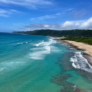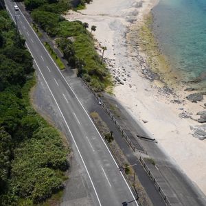 深い青が濃い海とサンゴ礁のターコイズブルーの浅い海、ウミガメもポツポツ写ってますね。