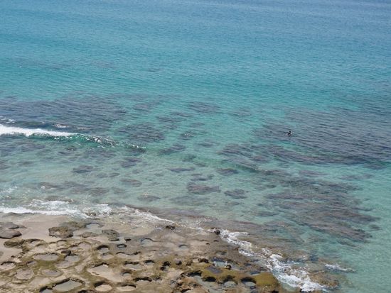 上から見下ろす海は絶景の一言で、下に小さく見えるカメが1mもあると聞いた時には自分がとても高い場所にいるということを再認識しました。
