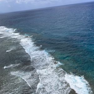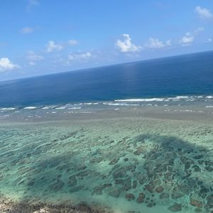 地上から80メートルくらいでしょうか、空も美しい青さ、そして海の青さ、珊瑚礁、数えきれない程の海カメを空から見る、貴重な体験をさせていただきました。もう一度、体験したい!