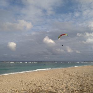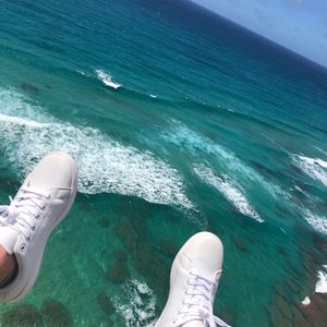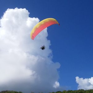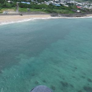 初めはどうなることかと不安で仕方がなかったのですがインストラクターのきちんとした説明でリラックス出来ました。落ちた人はいないということで安心しました。それに一人で飛ぶのではなく後ろでガッチリサポーターがいると思うと空高く上がっても恐怖心はなかったです。青い海と時々見える海亀が可愛いかったです。