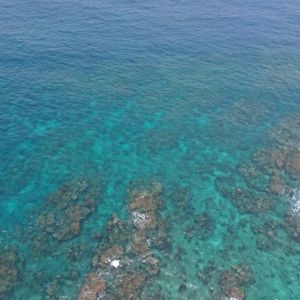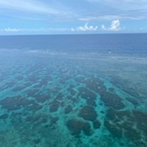 眼下に広がるサンゴ礁、様々な青を潜るのとは違った目線で見せてくれました。