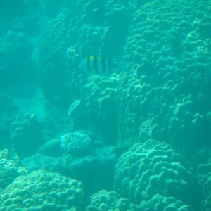 悪天候で魚やサンゴも見えないかと期待せず乗船しましたが、海の中は綺麗で、サンゴや色んな種類の魚を見ることができました。