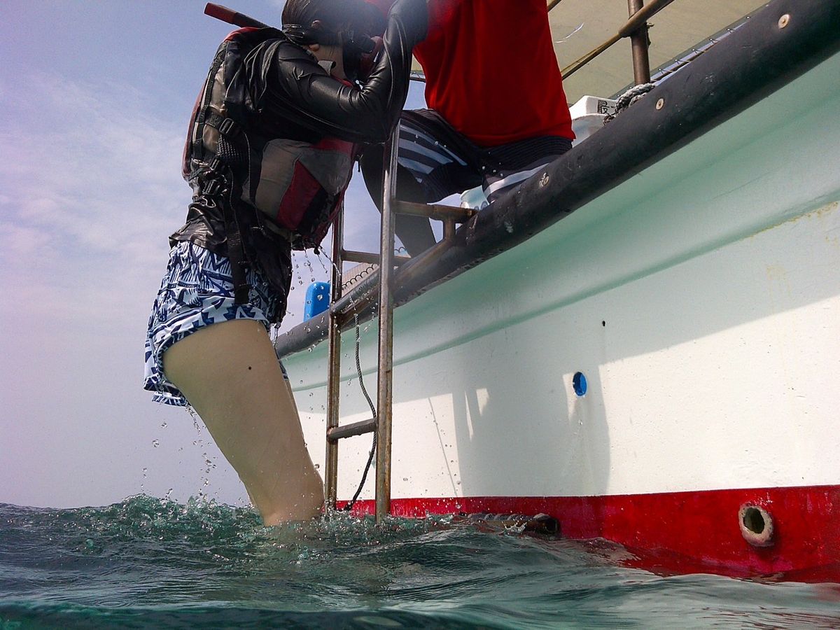 海になじみがない母は思ったより怖がっていたようで、同行した私は気づいていなかったのですが、船長さんが救命用の浮輪を投げいれて下さり、浮輪とロープで安心して海の中を観察できました。