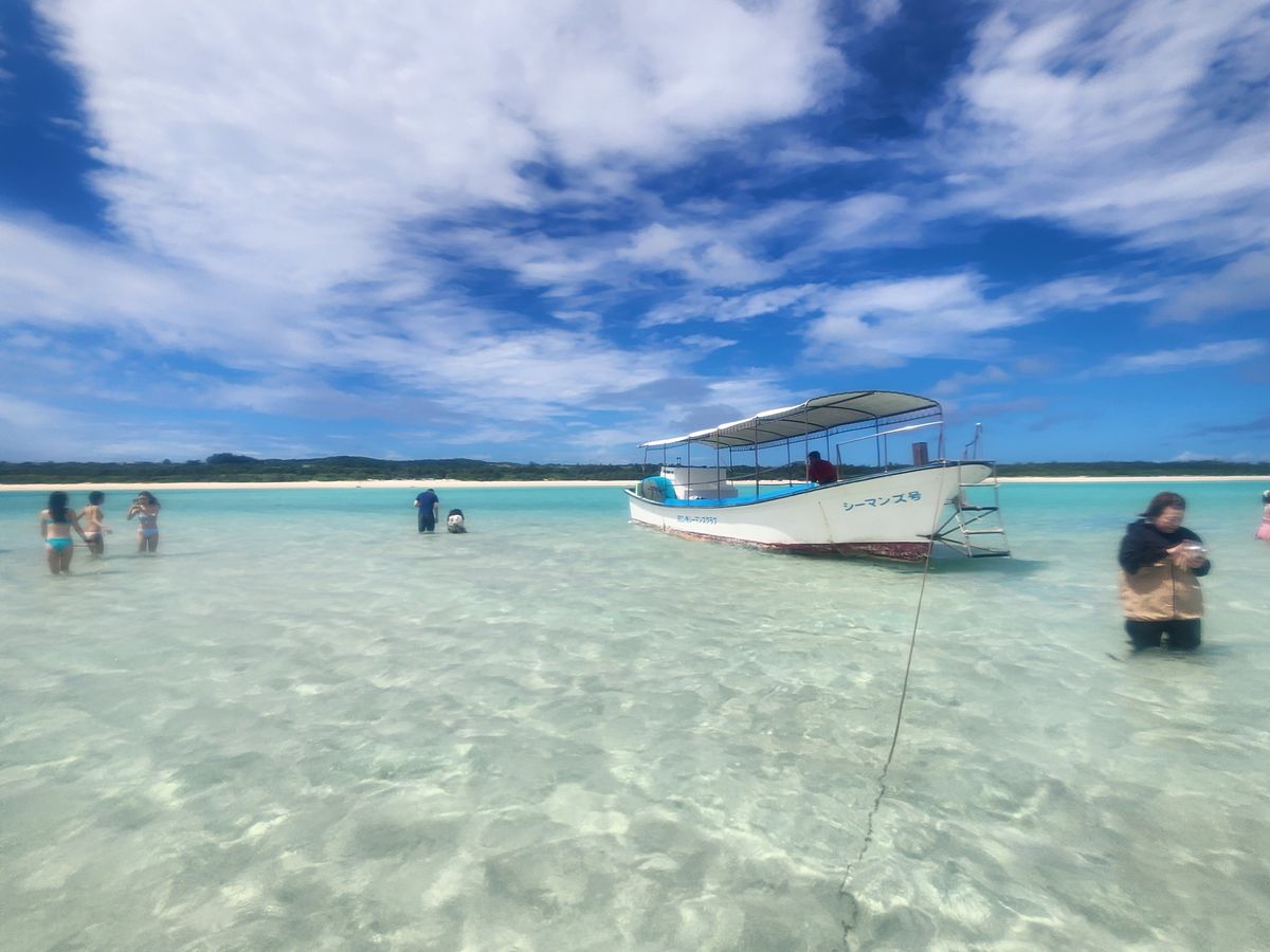 お盆に少しかぶり与論滞在中に予約をして、利用させていただきました。残念ながら台風の前後もあり砂浜は削られていたため、砂浜はお目見えできませんでしたが、海の真ん中で立つ不思議な体験をしました。船長さんのオススメでビーチサンダルは船に置いて、素足でおりましたが、とても心地よい感触と、エメラルドグリーンの海に360度囲まれ、膝くらいまでしかない波がまた不思議で、手ですくいあげた砂から星砂を歳の数だけ拾うというドラマティックな体験をしました。
