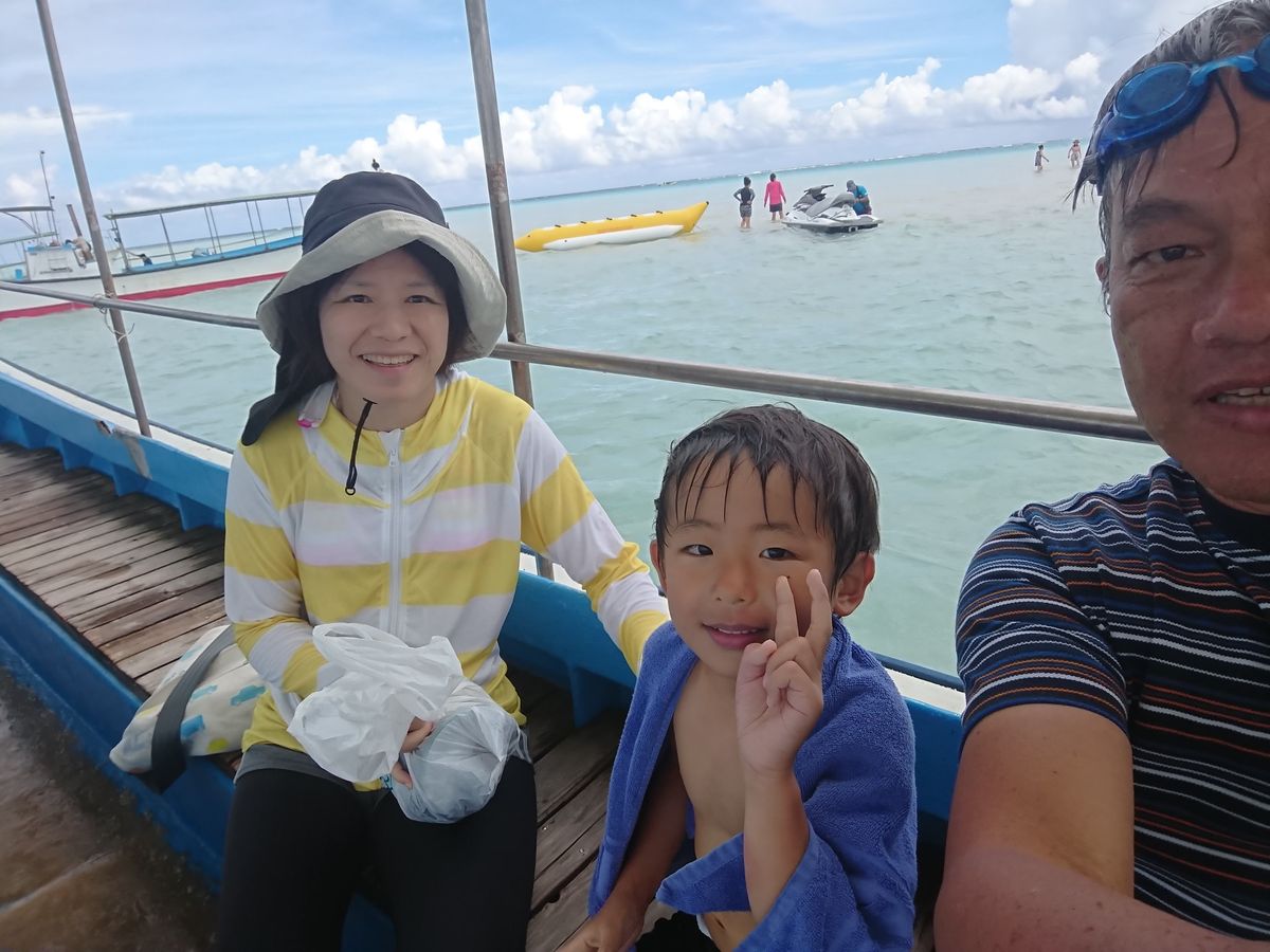 ボートに乗って百合が浜までも10分ほど?で梅雨にもかかわらず本当に良い天気で、百合が浜も大きく出ており、風も水温もとっても快適で思っていたよりも相当過ごしやすく、父母や子供たちもとっても楽しんでいたため、