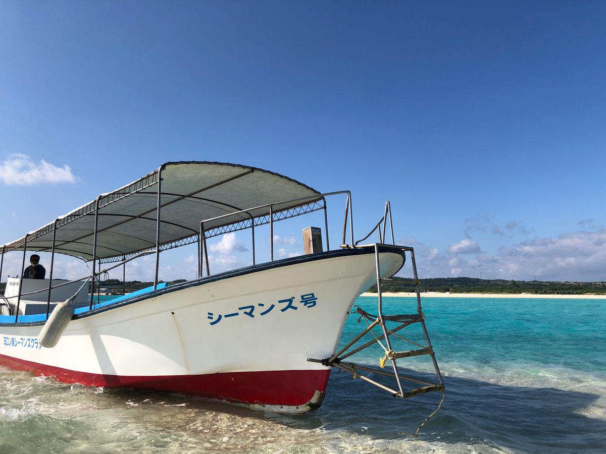 前日メールで、風が強めで船が出せない可能性がある旨の連絡があり、どうなることかと思っていましたが(ダメだった時のスケジュールも考えられたのでよかったです)、結果としては無事に船が出せて百合ケ浜にも上陸できました!砂浜は出ていませんでしたが、浅い所で大人の膝下くらい浸かる感じでした。また帰りの走行中に、海底が見えるガラス越しにウミガメを見つけられ、船長さんに船の位置をウミガメが見えるように調整してもらったりと注文を聞いていただいて感謝でした。