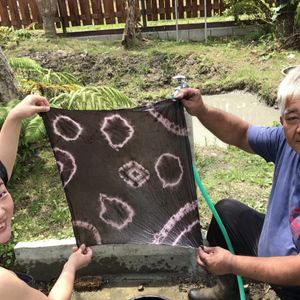 泥染め体験主人も大変満足していました。旅行中はその日染めたショールをずっと身につけて過ごしました。