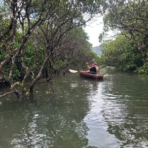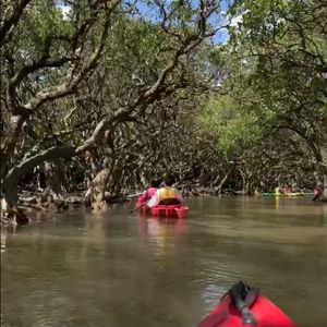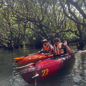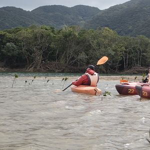 以前 釧路でカヌー体験しましたが その時はインストラクターと3人乗りだったのですんなり移動したりすることが出来ましたが 今回は70代が家内2人乗りで挑戦したがなかなか思うようにはならず 他のカヌーにぶつかったり、マングロープに当ったり、浅瀬に乗り上げたりの体験でした。しかし30分後にはある程度慣れ約1時間半体験しました。非常に疲れました⁈