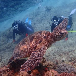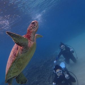今回は、体験ダイビングモニターツアーに参加しました。ダイビングは初めてで、少し緊張と不安もありましたが、インストラクターさんが丁寧に教えてくださり、安心して取り組めました。前日にシュノーケルをした際にウミガメを見ることが出来なかった旨を伝えたら、ウミガメが高確率で見える海岸までわざわざ連れてってくれました。魚の数は思ったより少なかったですが、4~6匹のウミガメと遭遇することが出来ました。こんな機会は滅多にないとのこと。本当に一生の思い出になりました。また奄美の海でダイビングをやりたいです。