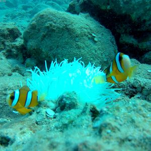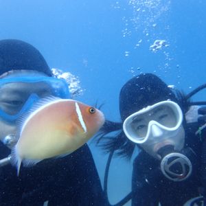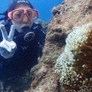 初めてのダイビングを友人と2人で体験してきました。海に潜ること自体2人とも初めてで、上手く潜れるか不安でした。でもインストラクターのお姉さんがマスクの付け方や耳抜きの仕方など初心者にもわかりやすく丁寧に教えてくださいました。最初は浅瀬で練習をして徐々に深い所へと潜って行きました。海に入ると水がとても澄んでいて綺麗なサンゴ礁やいろいろな魚を見ることができました。念願のカクレクマノミを3種類も見ることができて最高でした!インストラクターの方がボードで生き物の説明をしてくれたり写真も撮ってくれました。お昼ご飯も付いていてとてもおいしかったです。初めてのダイビングでしたが安全安心で楽しむことができました!