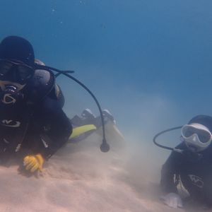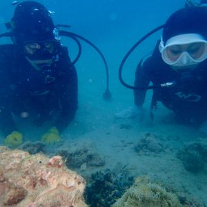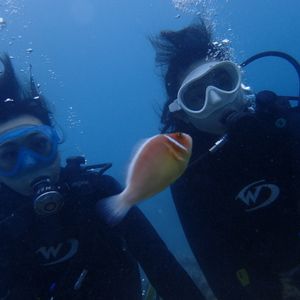 僕自身はダイビングは初めてでは無かったのですが、彼女が初めてという感じで来店しました。最初は器具の使い方の説明や水中でのサインの説明などから入ってくれたため、初めての人でも心配することなく参加できます。また、写真も撮ってくれるため記念としても形に残ります。このプランだと近くのレストランのランチ券も付いて来るため、終わった後に食べに行くこともできます。さらに、インストラクターのお二方がユーモアのある方で、不安なことがあっても優しく丁寧に教えてくれます。