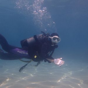 いざ潜ろうとした時、ゴーグルに水が入ってきてしまい慌てて不安になっていたのですが、ゆっくり落ち着かせていただいてとても安心出来ました!何回も何故か水が入ってきたので、インストラクターの方がご自身のゴーグルを交換してくださいました( ꈨຶ ˙̫̮ ꈨຶ )感謝です。水中ではあまり深い所まで行かなかったのですが、たくさん魚がいて、太陽の光でとても海が綺麗でした☆お兄さんの水中芸がお見事でした!