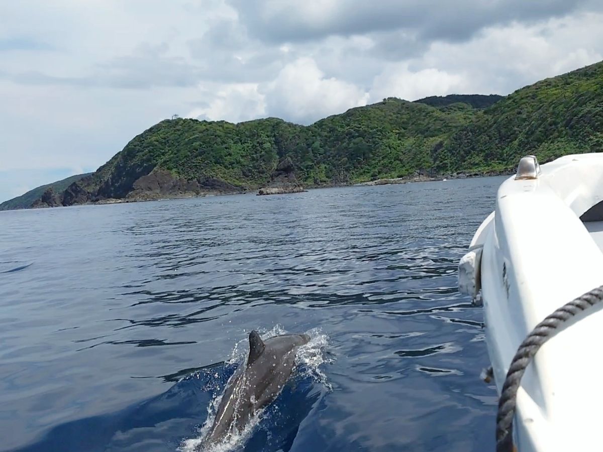 帰りに遭遇したイルカたちとも遊ばせてくれて