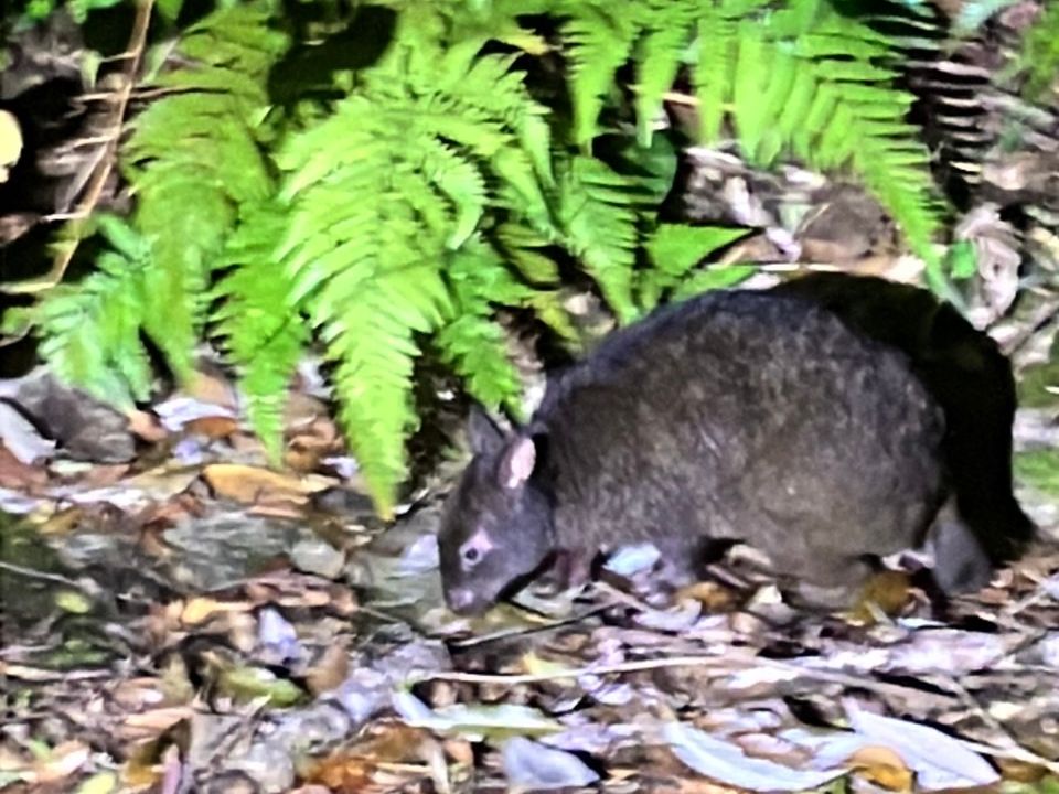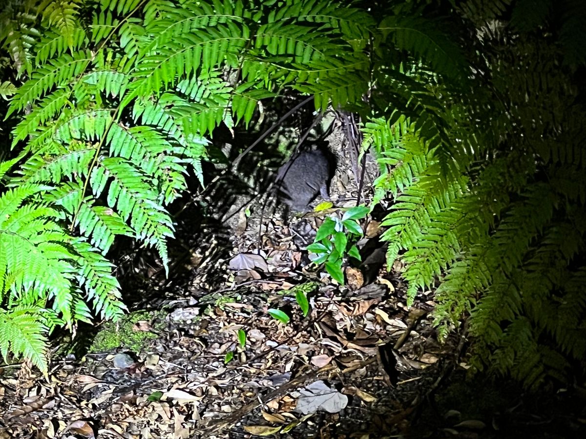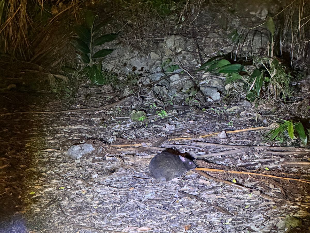 黒ウサギ、アマミイシカワガエル、ハブ、青鳩、ルリカケス、山ネズミなど貴重な生き物を見ることができました。また、カエルの求愛の声やコノハズクの声を教えて頂きました。