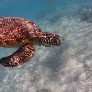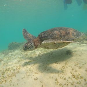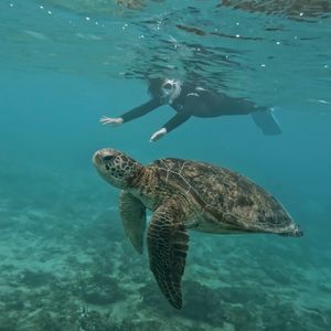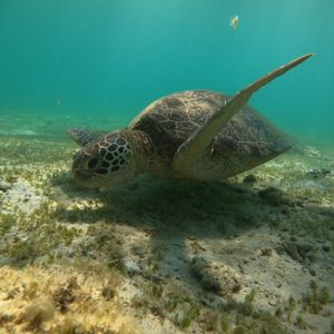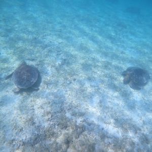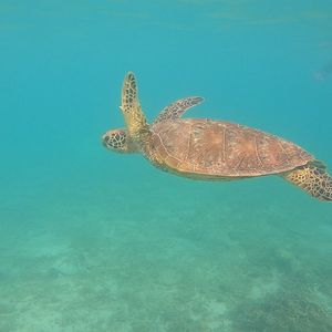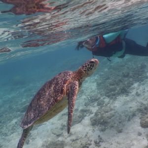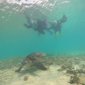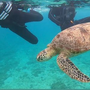 2022.10.6私はシュノーケルが苦手だったんですが、どうしても可愛いウミガメと一緒に泳ぎたいと思いウミガメシュノーケルに参加しました。海に行く前にシュノーケルの方法を丁寧に指導、アドバイスして頂き、安心して参加できました。ウミガメは自然の生き物で会えるかドキドキでしたが、運良くこの日は2匹のウミガメに出会い、自然界でありのままに生きている姿を観る事ができ感動しました。他にも可愛いお魚や美しい珊瑚も観れて大満足です。またインストラクターの方がとても優しく本当に参加して良かったです。写真や動画も頂けて、素敵な思い出をありがとうございました。