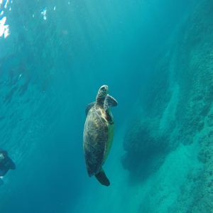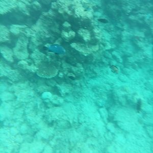 で綺麗な魚にたくさん出会えます!ガイドさんから魚の種類も教えてくれます。天候が良くほんと海の中も綺麗でした!最初はカメになかなか遭遇しなかったんですが 反対側に行った時に2匹のウミガメに逢いました!でもカメラの調子が悪く次に見た瞬間は砂で遊んだ後だったのか綺麗な甲羅が砂まみれになってて 真っ白に(笑)その時の写真がようやく撮れた一枚なので見えにくくてすみません。でもほんと出会えた時は感動でめちゃくちゃ可愛いです!