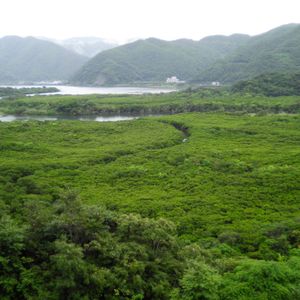 ホテルピックアップで春の新芽が美しい山々を眺めながら車でマングローブへと向かいました。