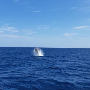 出船後すぐにブロウ(潮吹き)を確認したもののなかなか姿を見せないクジラ。諦めかけた頃、その大きな姿を立ち上がるように見せてくれました。やはり、生で見ると感動が違います。でも感動し過ぎてその写真は撮れず。