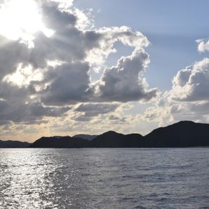 ・船が速度を上げたり、方向を変えたりするとき、しぶきがかかり全身ずぶぬれになります。船室内からも見れますがガラス越しです。私は帽子と上下防水レインスーツ、防水の靴で快適に過ごせました。