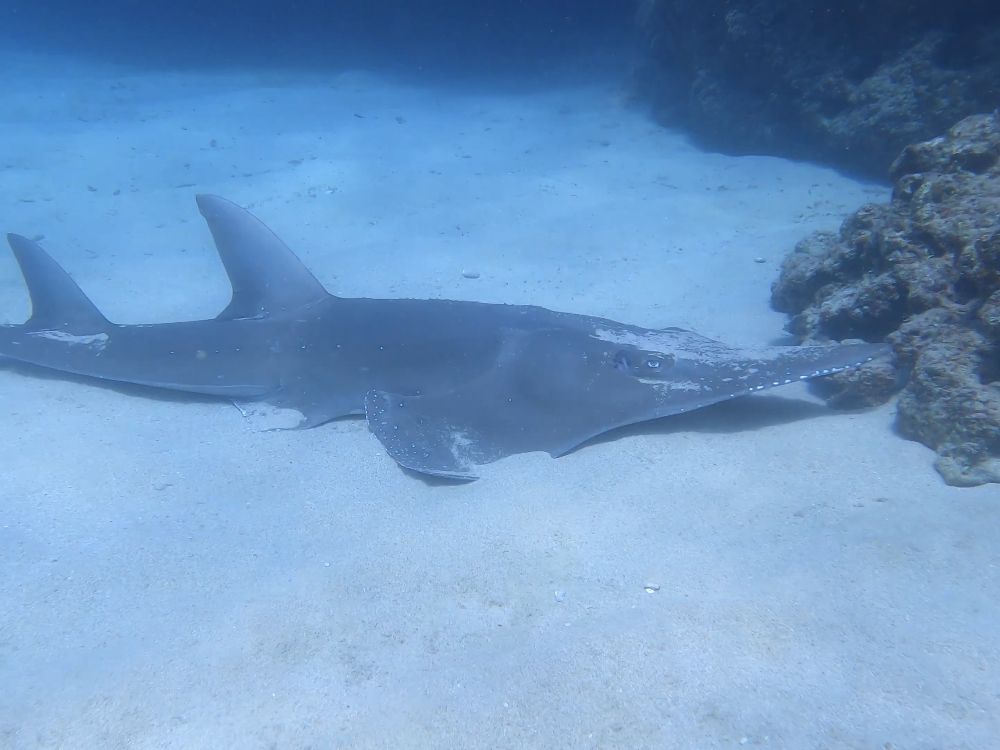 気持ち良いガイドで気持ちよくウミガメ鑑賞できました。サメみたいなエイもみれました。
