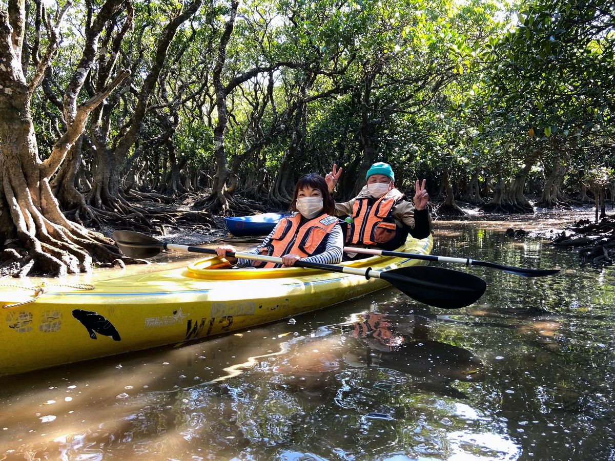 マングローブカヌーと金作原トレッキングに参加しました。カヌーははじめてでしたが、丁寧に教えていただいてまったく問題なく参加できました。ガイドさんが植物に詳しく、話を聞くのが楽しかったです。トレッキングはずっと平坦な道で歩きやすく、スニーカーでも十分だと思います。恐竜の世界に迷い込んだかのような景色に感動しました。1時間くらいなので、体力がない方でも無理なく参加できると思います。天気もよく最高の1日でした。ありがとうございました!