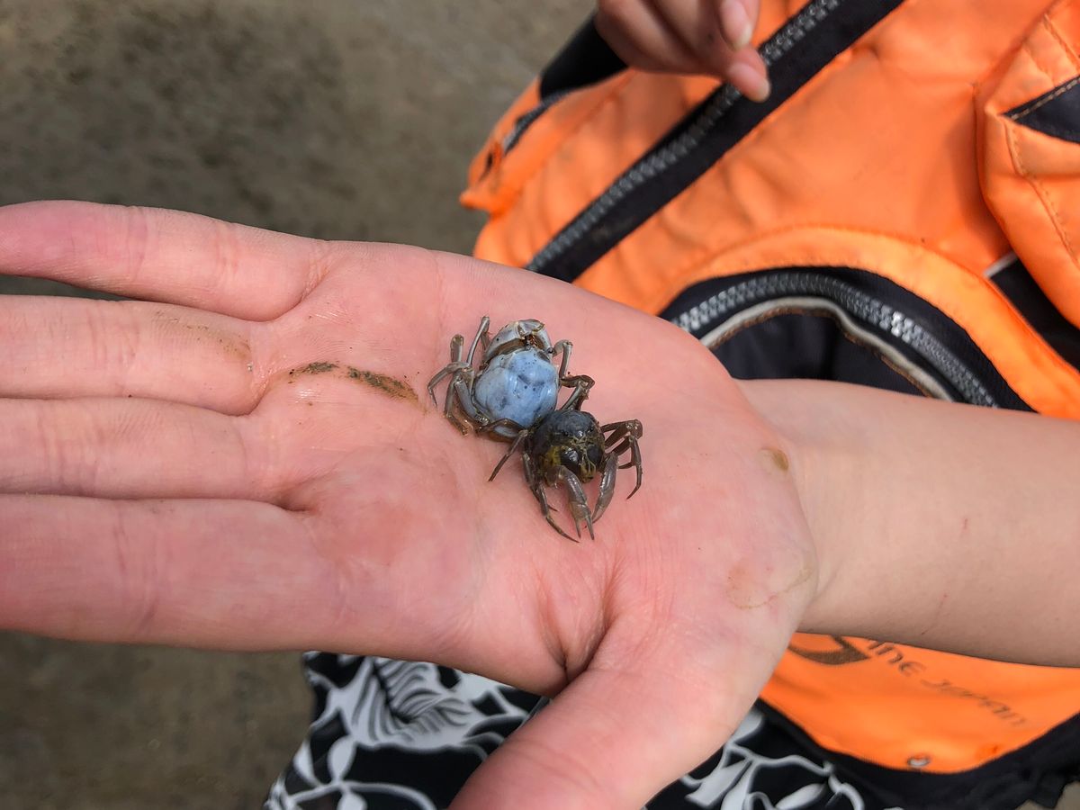 折り返しの地点で一旦カヌーから降りてカニをみたりハゼをみたり散策タイムもありました。
