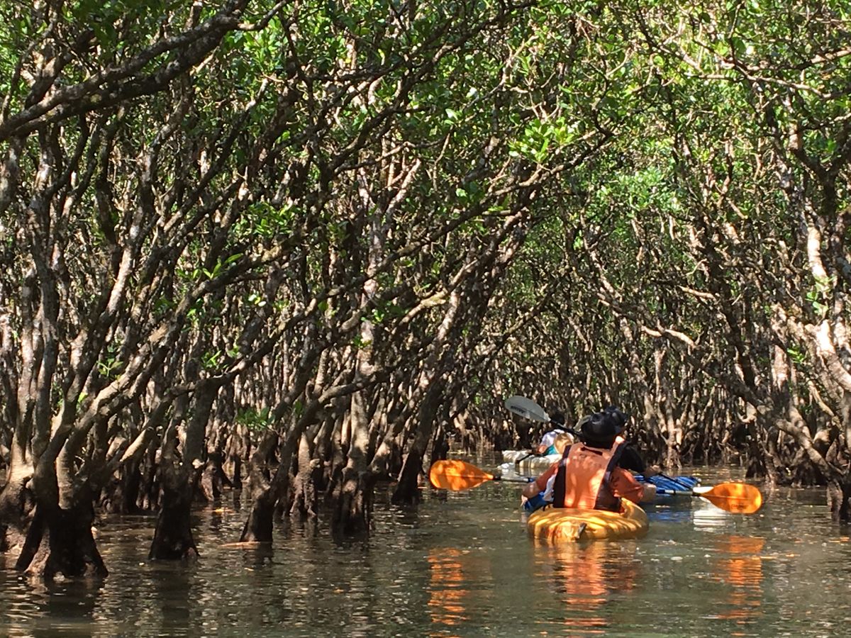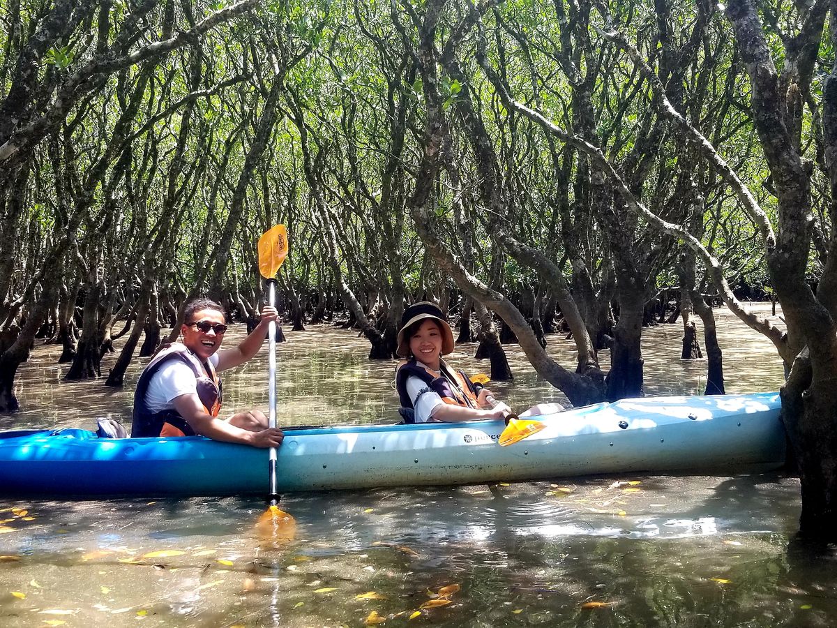 午後のマングローブのカヌーは、干潮の時間を考慮して昼食時間を長くとってくださり、街中の散策もできました。カヌー置き場に着いた時には、まだ干潟も残っていましたが、干潟での体験も面白いからと出発して干潟に上陸。素足で干潟に上がると、シオマネキがサッと巣穴に入り、白かった干潟があっという間にただの泥に。童心に帰り、シオマネキを取ったり、マングローブの種の実を取ったりしていくうちに、潮が満ちて来ました。いよいよマングローブのジャングルでのカヌー体験が始まり、ワクワクドキドキ!滅多にのらないカヌーに、最初は不安を覚えましたが、そこは安心あれ。ガイドさんの丁寧な指導の元、不安も解消され、本当に楽しいジャングルツアーを経験できました。マングローブの森にできた細い道をカヌーで進む時の冒険心をくすぐる感覚は、なかなか経験できるものではありません。今回のツアーでは、ガイドさんの経験に基づき、時間が大幅に延長されましたが、延長料金が発生するわけでもなく、最後まで楽しく世話をして下さり感謝しています。本当に楽しい1日でした。ありがとうございます。