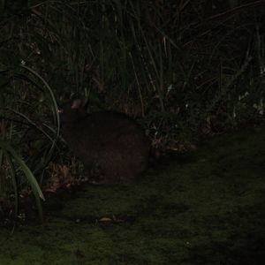 大変寒くて雨がかなり降る夜だったので、クロウサギを見ることを半ば諦めていましたが、ガイドさんの熱心な捜索のおかげで、雨の合間にはっきりと3羽のかわいいクロウサギを目にすることができました。一瞬のウサギの気配も含めれは5羽を観ることができました。