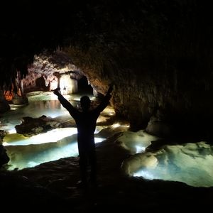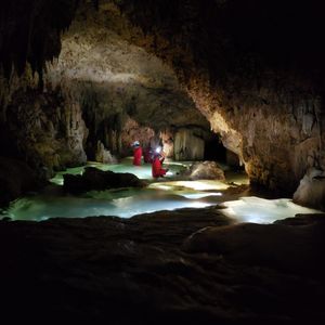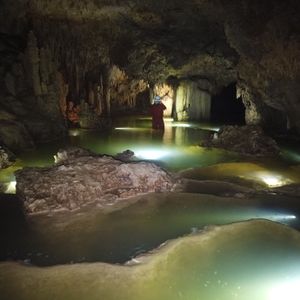 還暦を過ぎ、初めてのケイビング体験!準備段階からこちらの質問にもメールで親切にお答えいただき安心して当日を迎えました。島の歴史や地球の悠久の歩みのお話を聞いた後の地下の別世界は、驚きと感動に満ちあふれていました。とても狭い隙間を這いつくばって進んだり、滝に打たれに行ったり、リムストーンプールに見入ったり。娘たちとゲラゲラ笑いながらの珍道中は楽しく、「え?こんなところどうやって進むの?」というようなところでも細かくレクチャーしていただいたおかげで安全に体験を終えることができました。帰り道の車内で教わった島の観光情報もありがたかったです。帰宅してから、届いたたくさんの画像や動画を見ては思い出にふけっています。ありがとうございました。