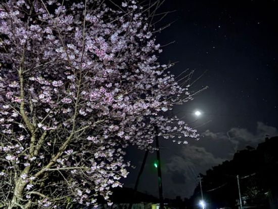 • 満開の夜桜と月と星
