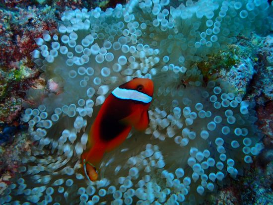 はじめにスキューバダイビングのご説明を行い、足のつく浅瀬での練習を経て、徐々に深度をとりながら水中を潜ります。ボートとは違い、まずは足がつく所からスタートできるので、ダイビングが初めての方や、船酔いが不安な方にオススメ。水深は約3~5m ほどです。