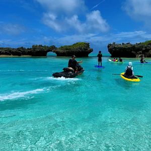 皆田海岸はとてもキレイでSUPをしていて気持ちが良かったです。初心者でもわかりやすいように教えてくれましたし、水上バイクでみていてくれるので安心でした。百合ヶ浜は残念ながら出現しない日でしたが、その場所に行くととてもキレイで感激しました。画像もたくさん送ってくてたので良かったです。