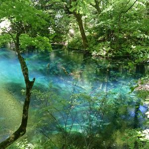 見たことがないぐらい青池の色が綺麗でした。それに、朝が早かったので混雑していな