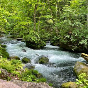ただし、奥入瀬は、水の量が豊富で、滝も多いため、スニーカーよりはトレッキングシューズのほうが足元の汚れを気にせず歩けます。