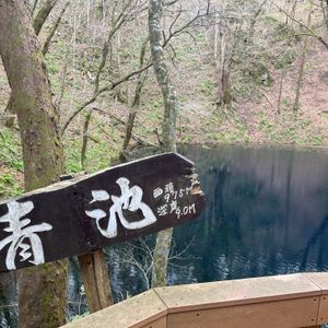 曇り空で青池は濃い紺池って感じでしたが、湖水の透明感と若葉のコラボレーションは素晴らしかったです。