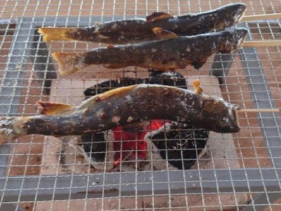 自分で釣ったヤマメやオショロコマをヤマメはからあげ、オショロコマは囲炉裏で焼いて食べることができます。