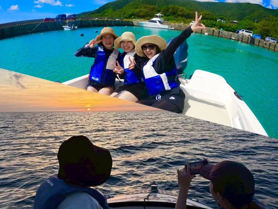 幻の浜「コウトリ浜」へボートでご案内!水平線に沈む夕日を海上から眺める贅沢なクルージング体験♪