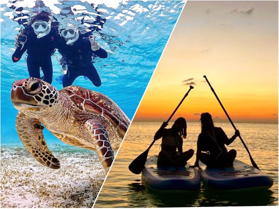 ウミガメシュノーケリング+サンセットSUPツアー 昼夕で変わる海の表情を楽しむ欲張りプラン<5~6時間/宮古島>