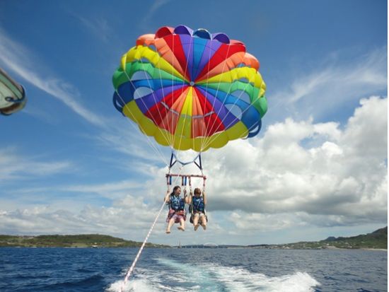 瀬底島の美しい海を眺めながらパラセーリング体験!ウミガメに出会えるシュノーケリング付プランも!