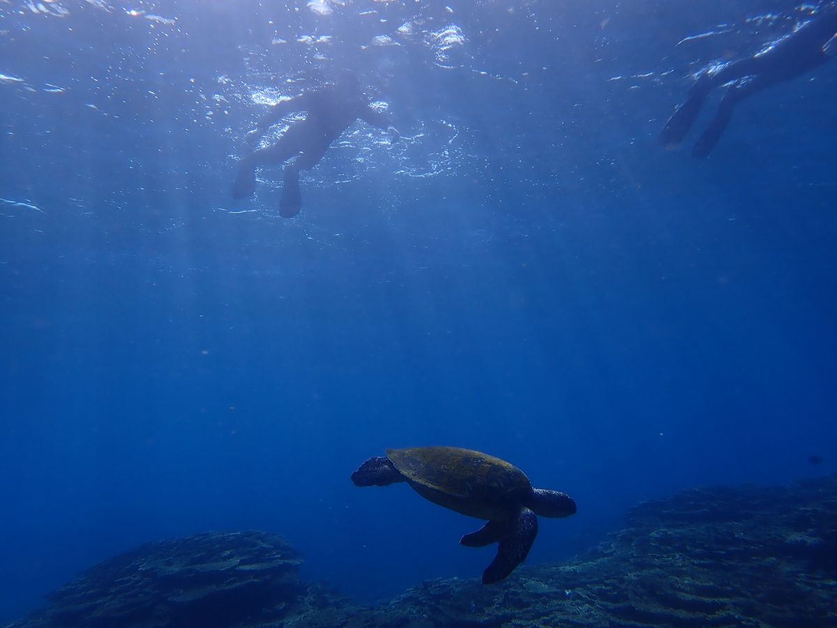 台風が近づきやや流れが強かったですが、ガイドさんが引いてくださる浮き輪につかまって休憩もさせていただきながらのシュノーケリングでした。念願のウミガメに出会うことができ大興奮!!!水中でのお写真のデータもいただけてとても嬉しかったです!