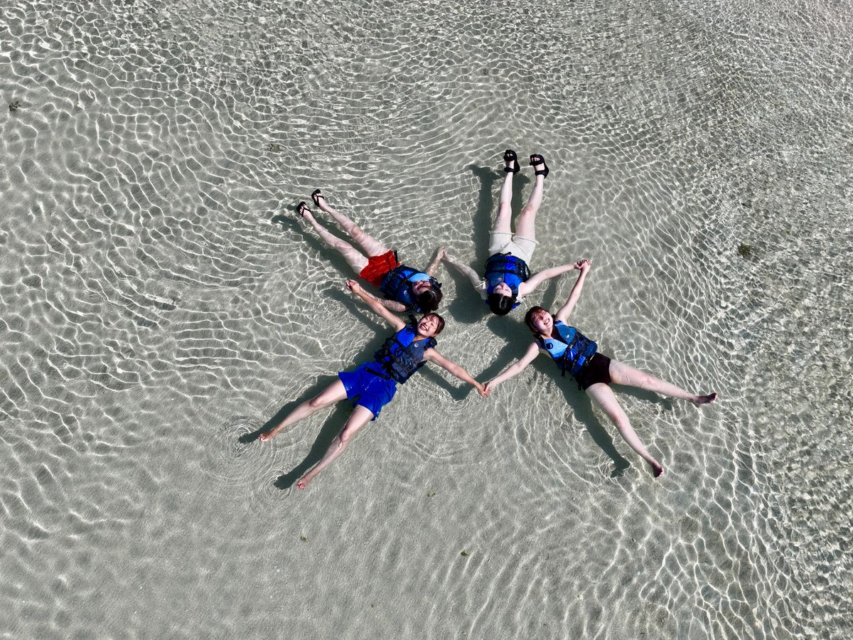天候に恵まれ、2箇所のポイントでたくさんのサンゴや魚を楽しんだ後、イフという砂地の浅瀬に連れて行ってもらいました。色とりどりの珊瑚礁はもちろん大変美しかったですし、イフのエメラルドグリーンに輝くクリスタルガラスのような美しさはずっと見ていたいくらい綺麗でした。携帯、水中カメラ、ドローンでの撮影もたくさんしていただき、友人ともども3時間で大満足の体験ができました。ありがとうございました!!