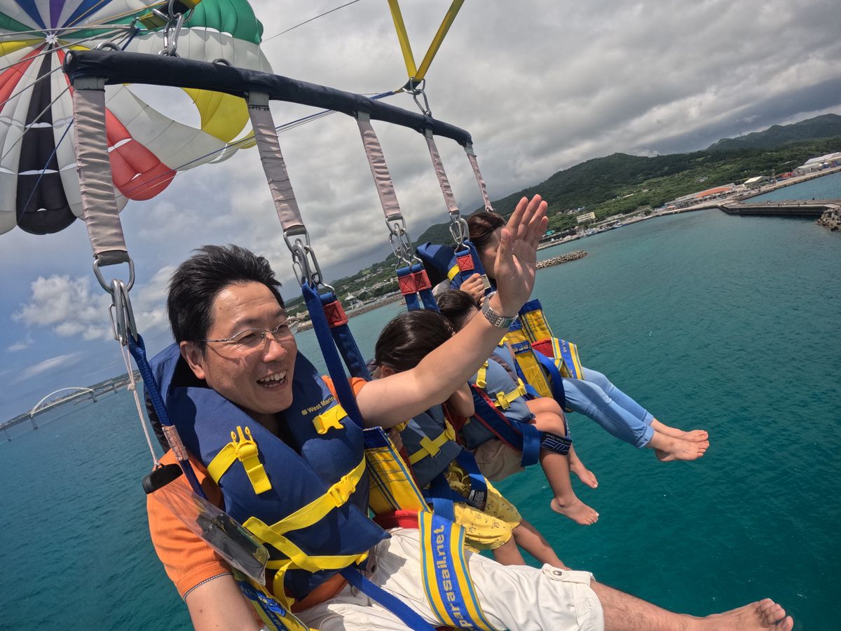 高いところ苦手なのでかなり緊張しましたが、空から見るエメラルドグリーンの海があまりにも綺麗で怖さを忘れました。もっと高くても良かったかも…家族3人、かなり重かったと思いますが、上手に飛ばしてくださったボートとお兄さんたちに感謝です。