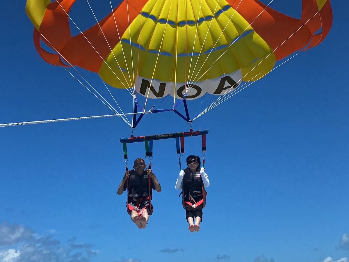 以前から体験したかったパラセーリングでした。高所恐怖症の私は最初少し緊張してましたが、スタッフの方の心使いや、先に体験した方のお話や笑顔😊に、いつしか恐怖心は消えてました。