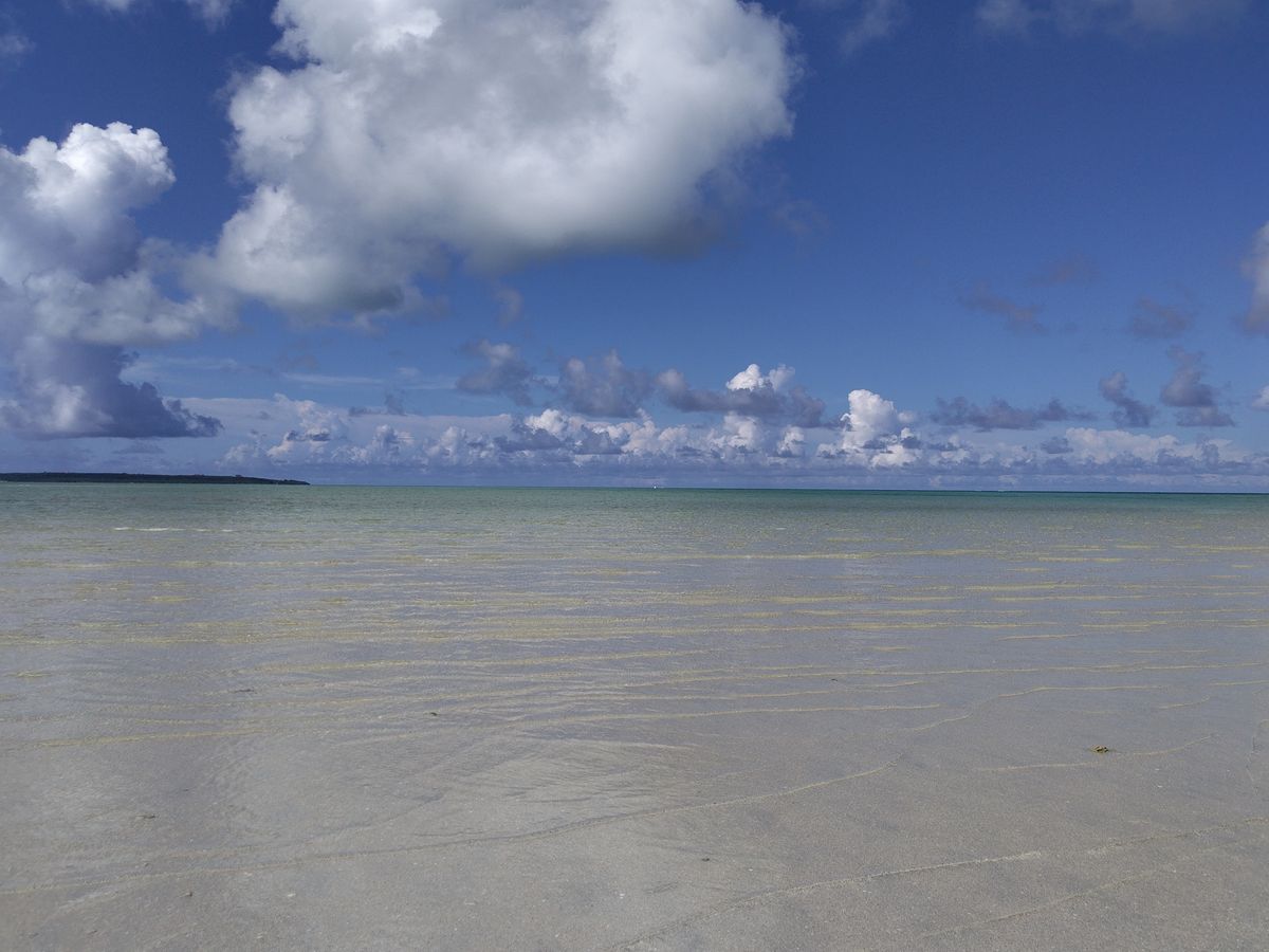 白い砂浜に着くと周囲360°透明な海。本当に透明でびっくりするほど。