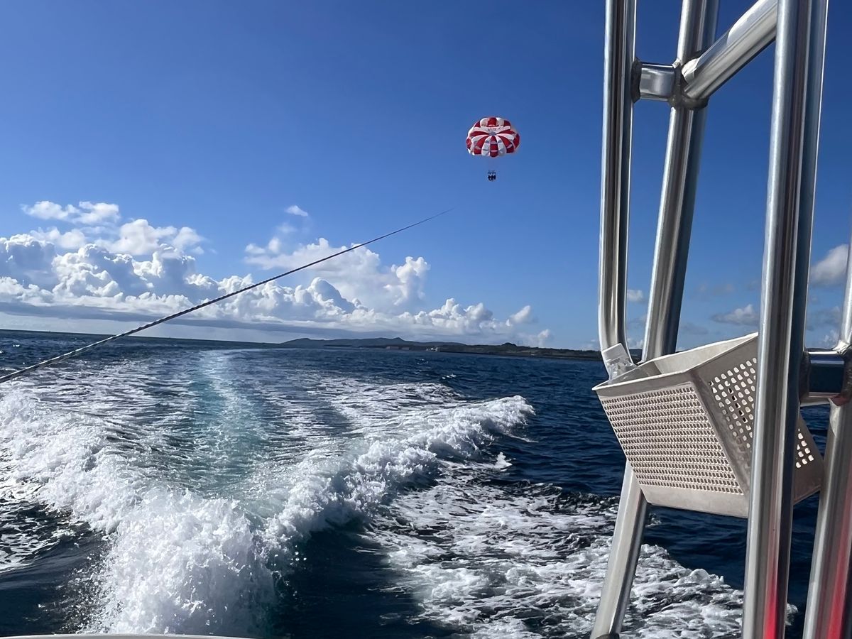 子供達がパラセーリングを体験したのですが、ボートに同乗させていただけました。